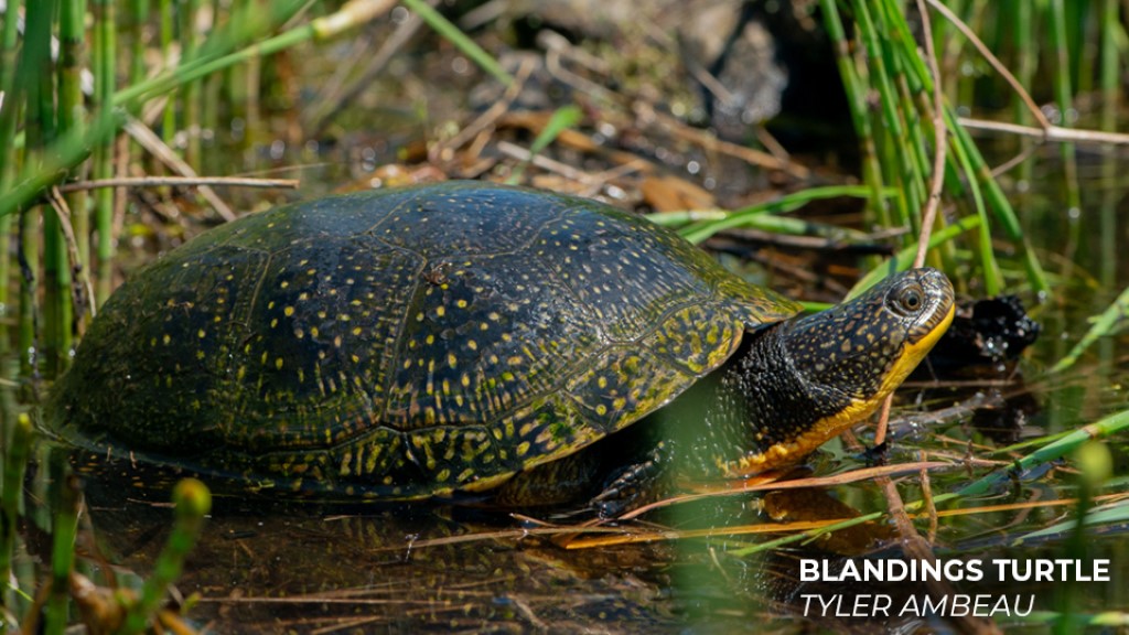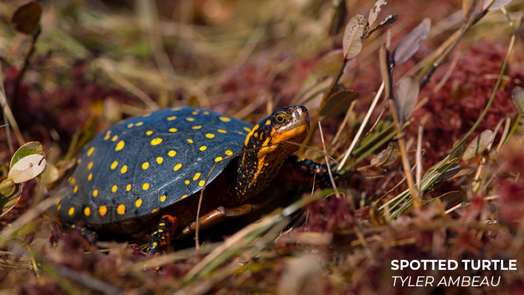 (Photo of a Spotted Turtle on the right and a Blandings Turtle on the left. Photos: Tyler Ambeau)