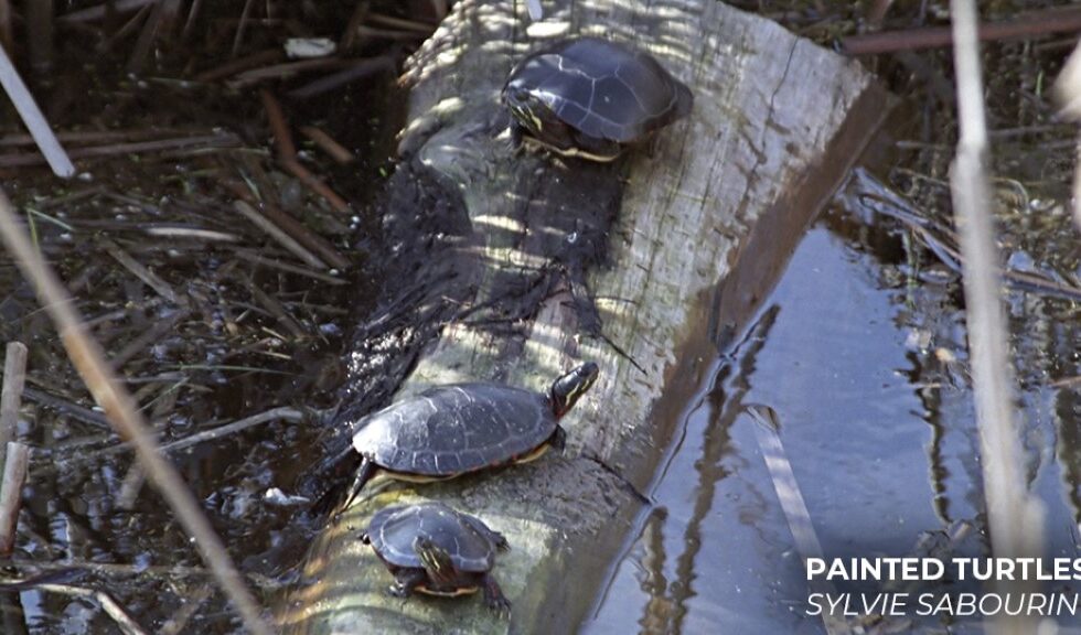 (A photo of Painted Turtles located in the Goulbourn Wetland Complex taken by Sylvie Sabourin.)