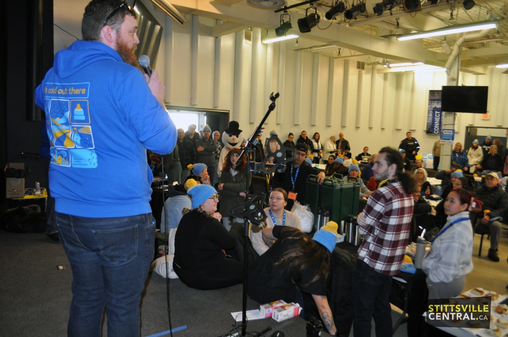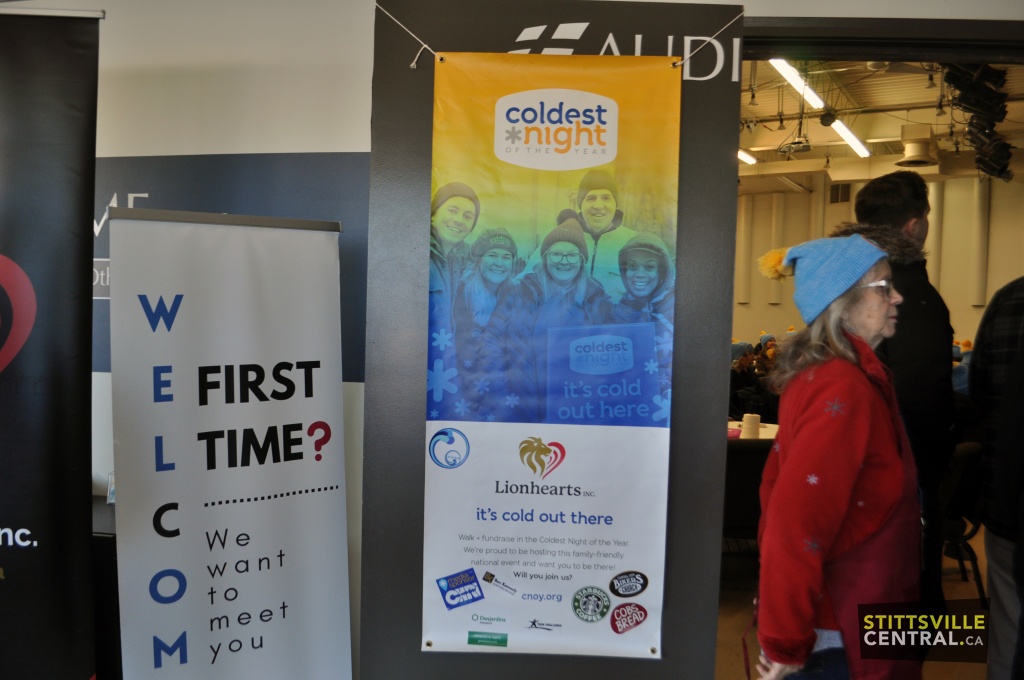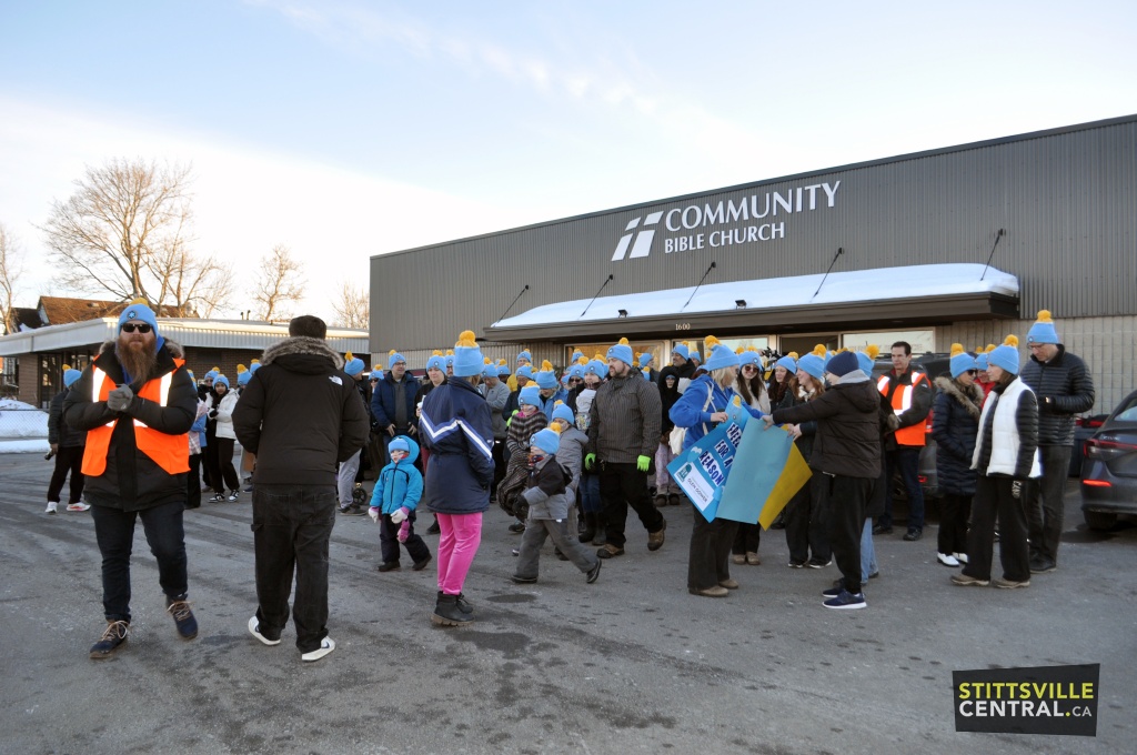On February 28th, the CNOY walk took place in Stittsville. Organized locally by Lionhearts Inc., it encourages participants to brave the elements as someone homeless would experience and walk either 2km or 5km. This year the venue changed to the Community Bible Church on Stittsville Main Street from where over 110 walkers departed for their chosen distance. They returned to the Church to a hot Chili meal prepared and served by the Church members.