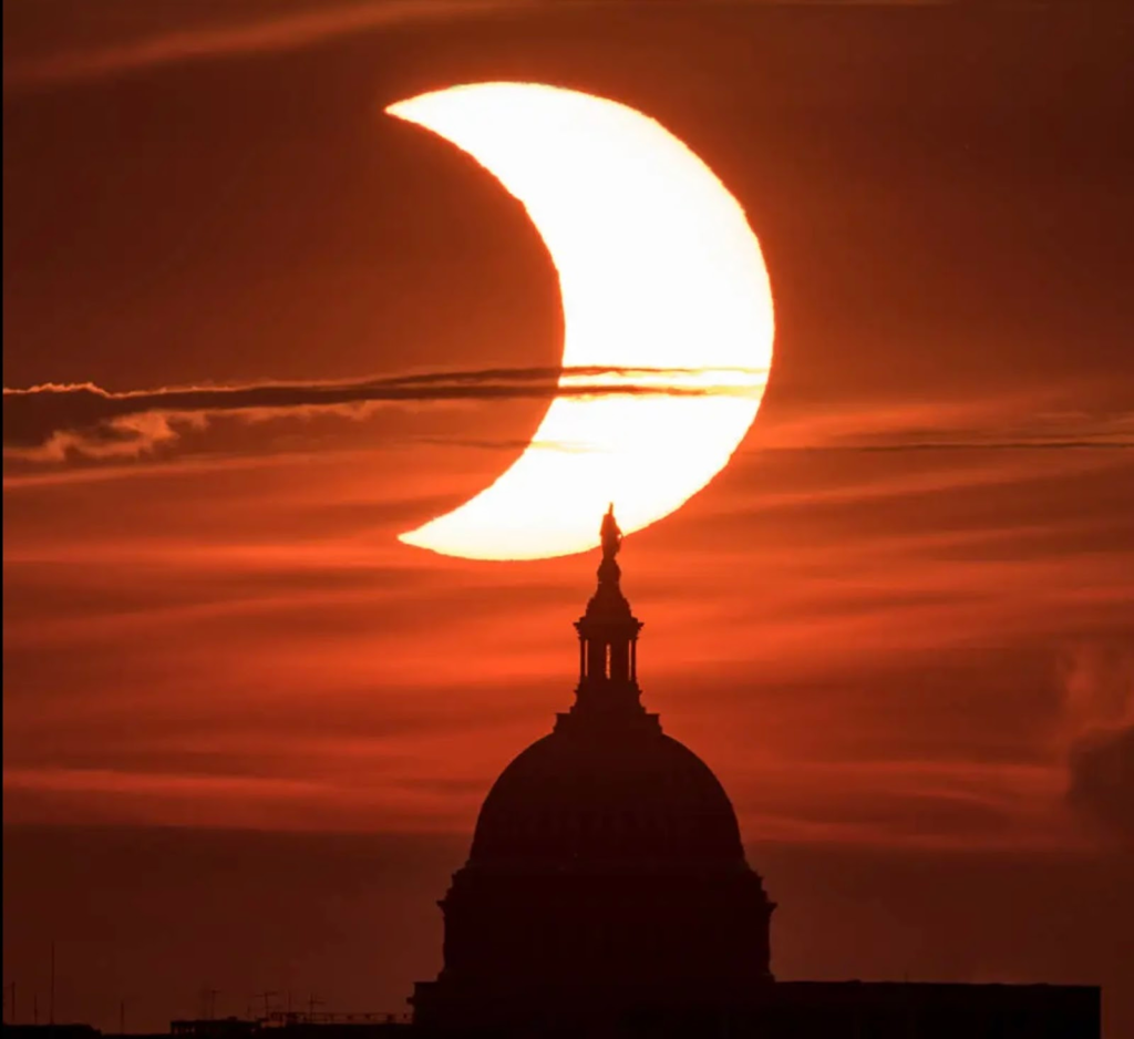 (A partial solar eclipse as photographed on June 10, 2021. Image Credits: NASA/Bill Ingalls)