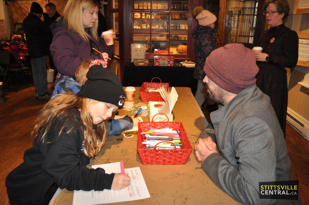Everyone was in a cheerful mood as visitors roamed and shopped at the various vendors who offered one-of-a-kind items. Everyone roasted marshmallows by the bonfire, fed the very special Christmas goats – Pepper, Marshmallow and Timmy – who travelled from Richmond with owners Amber and Cory. Cory told us “the goats love Cheerios and were spoiled with the many kids feeding them”. The Blacksmith attracted quite a crowd as he demonstrated his skills. The Museum building was busy with little hands making vintage Christmas crafts and writing letters to Santa.